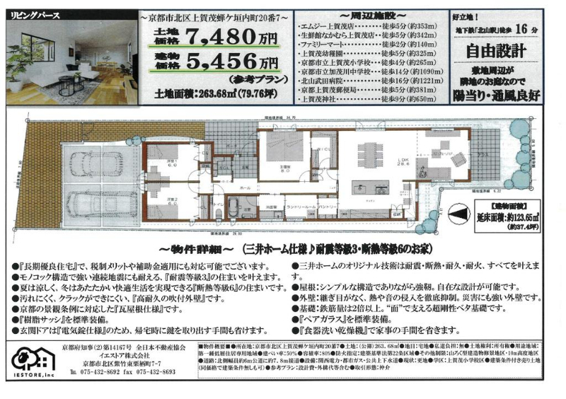 新築セットプランの建物価格は参考価格です。土地代金と建物価格以外に、契約事務手数料や外構工事を含む付帯工事費用が必要です。また、土地の条件によっては、建築できない場合や土地の上物解体費用や造成工事に費用がかかる場合があります。予めご了承ください。